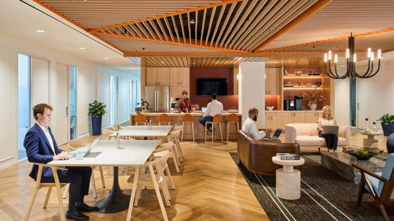 The interior design is focused on natural light, flexibility, openness, and durability. The carpet, tile, and polished concrete co-exist nicely, providing a soothing accent to those seeking respite, nourishment, or the opportunity for exercise. The diverse seating options provide solutions for a wide variety of personal interactions while allowing for unique experiences and vantage points for visitors. The 14,000 square foot state-of-the-art amenity center goes a long way toward improving the daily workplace experience of the Parkwood Crossing business community.