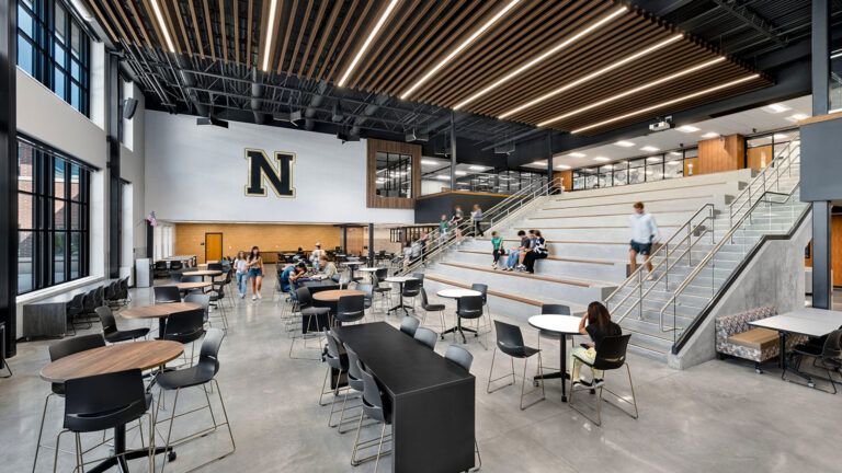 The 21,000 square foot Sports Performance Facility will transform PE, wellness, athletics and youth sports programs, serving the community for decades to come. This space includes two basketball courts, a fitness track, state-of-the-art weight and fitness room, and new ‘Hall of Fame’ entry corridor. Designed as an architectural statement, CSO worked tirelessly to ensure a unique aesthetic could be provided utilizing an economical pre-engineered metal building.